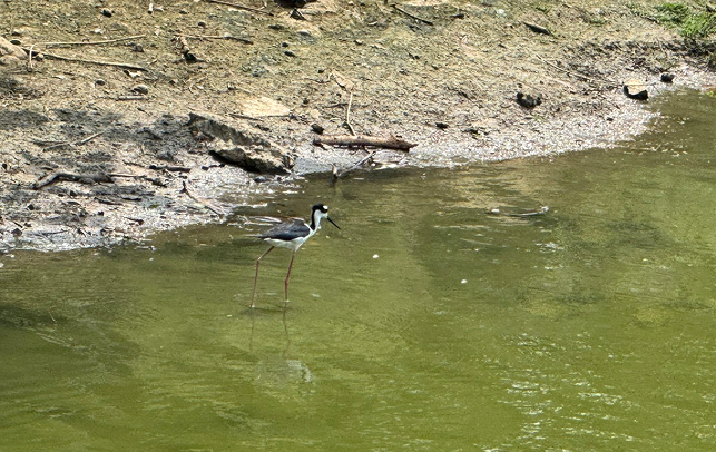 La Cigüeñuela Cuellinegra (Himantopus mexicanus) es una ave zancuda inconfundible por su elegancia y silueta delicada. Posee patas extremadamente largas y delgadas de color rosado intenso, que le permiten desplazarse con facilidad por aguas someras mientras busca alimento. Su cuerpo es esbelto, de plumaje mayormente blanco en la parte inferior, contrastando fuertemente con el negro brillante del dorso, las alas y, como su nombre lo indica, el cuello, que suele presentar una franja negra que puede extenderse hasta la cabeza, especialmente en los machos. El pico es largo, recto y fino, ideal para capturar pequeños invertebrados, insectos acuáticos, crustáceos y larvas, los cuales encuentra escarbando con precisión en el lodo o el agua poco profunda. Esta especie habita una amplia gama de ambientes húmedos, incluyendo lagunas costeras, salinas, estuarios, arrozales, pantanos y bordes de lagos y ríos, mostrando una gran afinidad por áreas abiertas y soleadas.