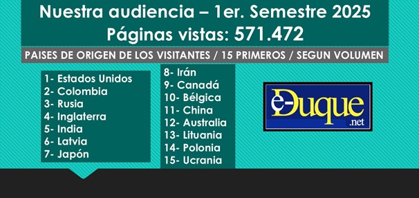 El semestre que acaba de concluir, registra cifras que revelan que los visitantes a nuestra plataforma E-duque.net, continúan creciendo, y que proceden de países que difícilmente hubiéramos tenido en nuestro cálculo, dado que hemos dirigido nuestro enfoque hacia la región latinoamericana.
