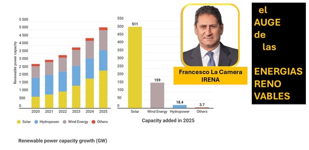 Al mismo tiempo, indicó que durante el año pasado, la capacidad instalada de energías renovables, principalmente solar y eólica, aumentó en 692 gigavatios, superando una capacidad global de 5.000 GW.