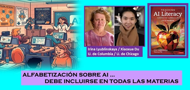 Todos los estudiantes deberían de estar ilustrados sobre este avance tecnológico, que nos acompañarán por mucho tiempo, en las actividades cotidianas, sostienen las autoras de un nuevo libro sobre la materia “Teaching AI Literacy Across the Curriculum”, las profesoras Irina Lyublinskaya, de la Universidad de Columbia, y Xiaoxue Du, en la Universidad de Chicago.